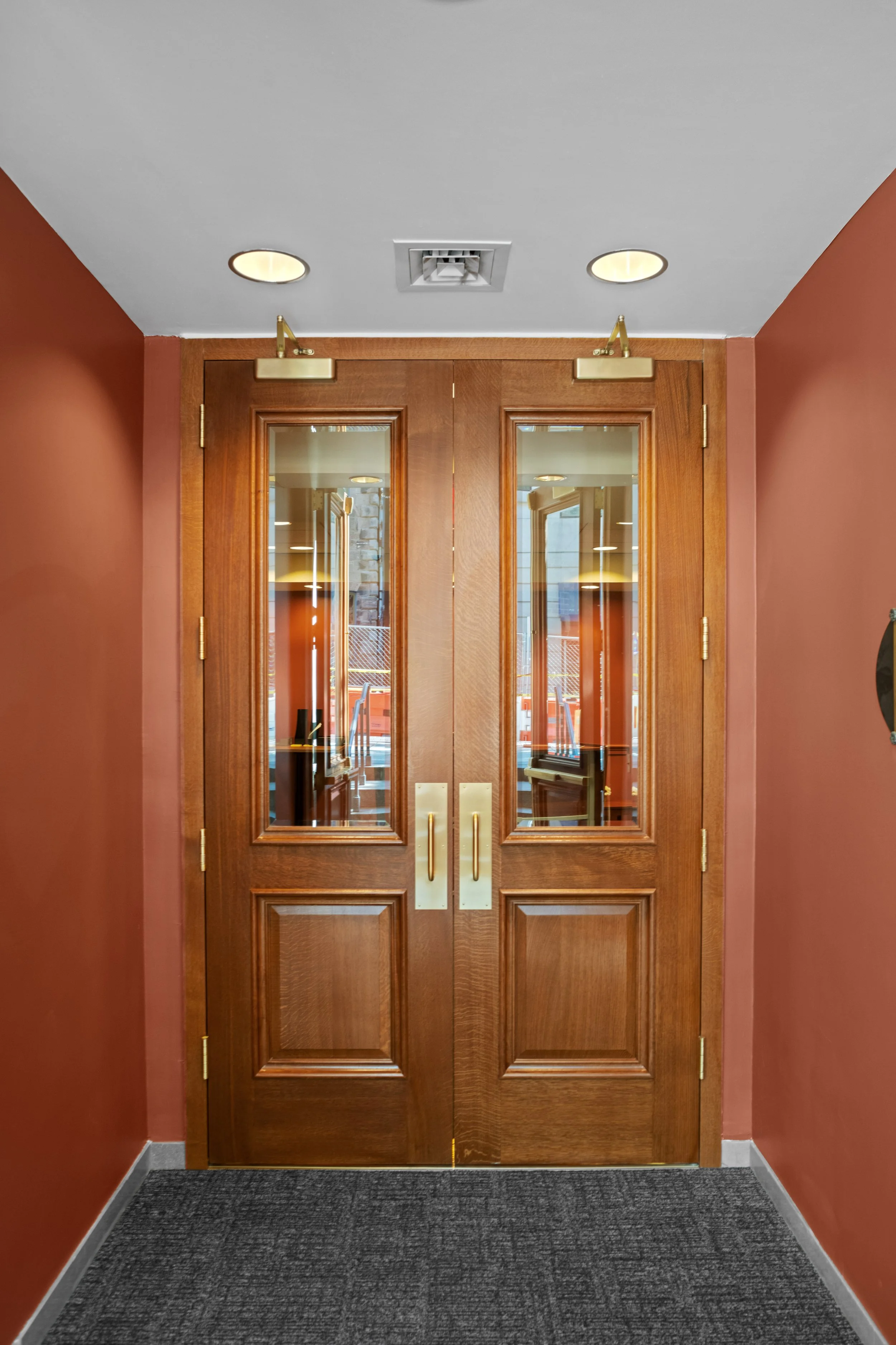 Continuing past Silverman Hall preservation work, Ford 3 oversaw reproduction of the primary wood doors at the main and side entrances. Local Philadelphian woodworkers fabricated monumental quartersawn red oak entry and matching vestibule doors with special attention to maintaining all original character and detail.